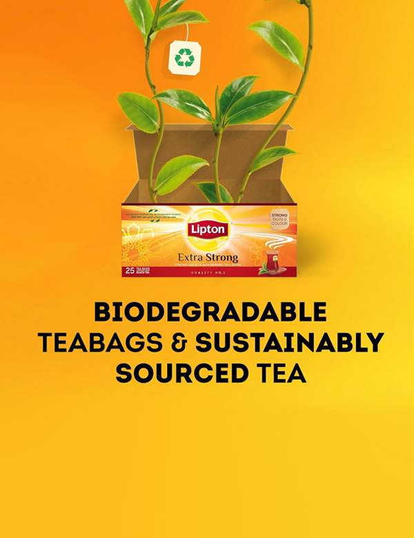 - Lipton extra strong black tea with 100% rainforest alliance certified tea bags