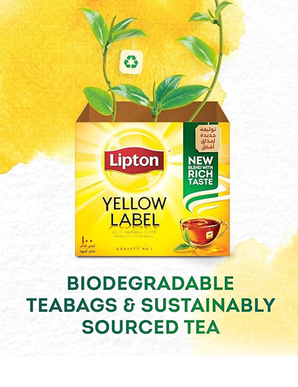 - Lipton Black Tea with 100% Rainforest Alliance-certified tea bags